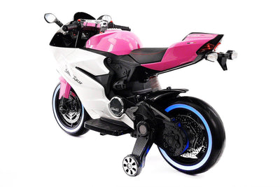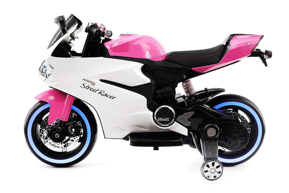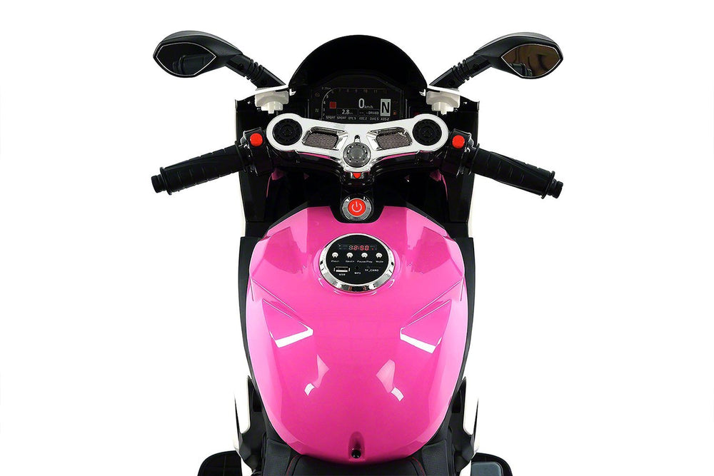 2018 Luxury Racer Children's 12V Powered Ride-On Toy Motorcycle W/ Leather Seat, Rubber Tires, Bonus Safety Feature